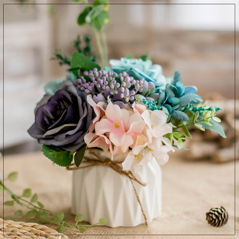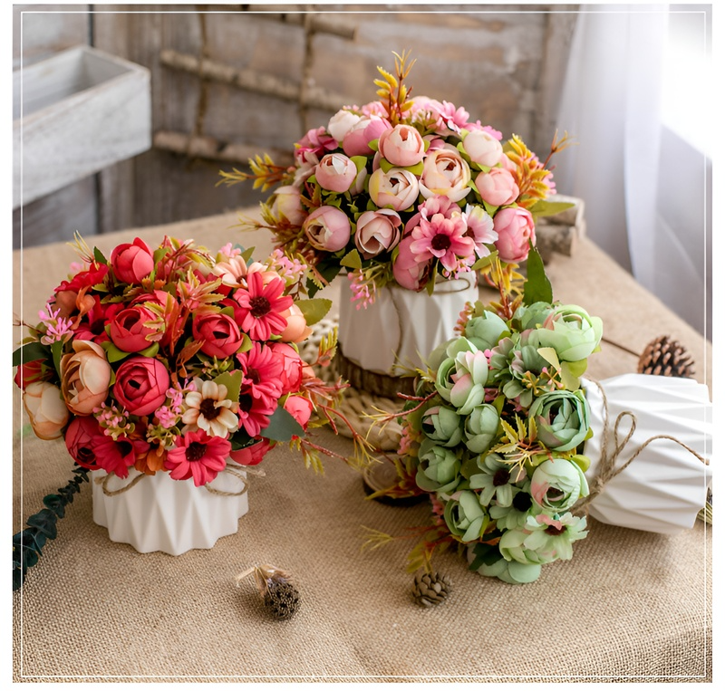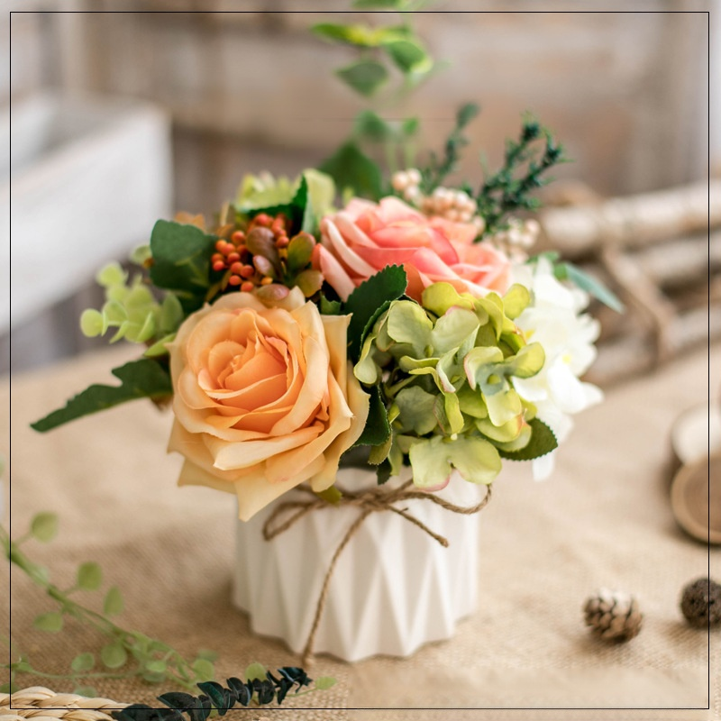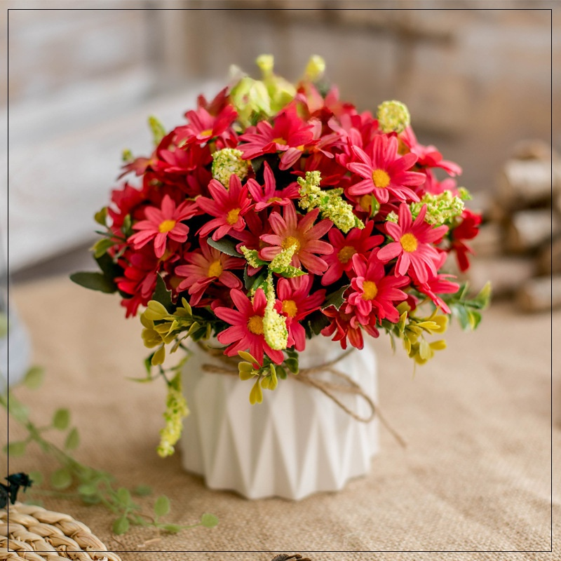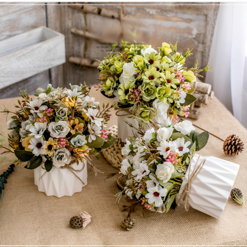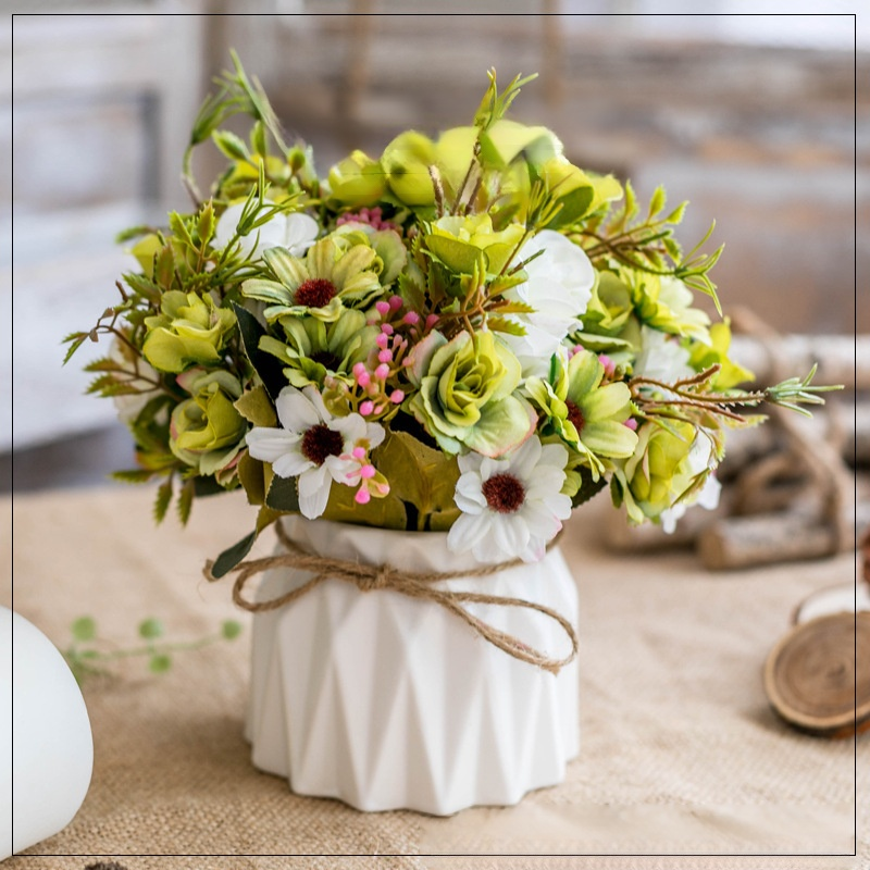 Juteseil-Deko-Vase mit künstlichen Blumen für Zuhause